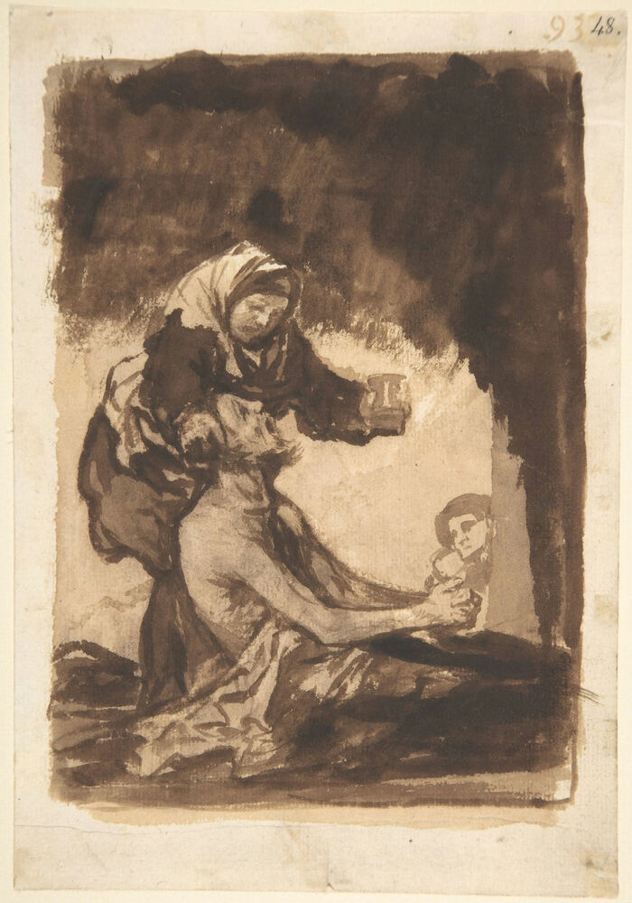 A woman giving a mug to an old man; folio 93 from the Images of Spain Album 'F'