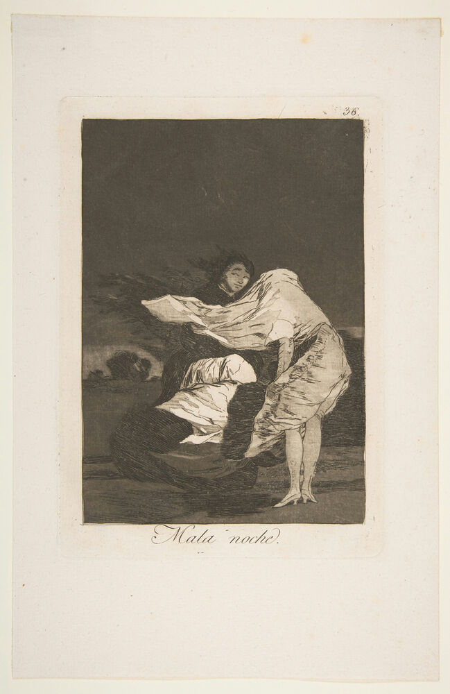Plate 36 from 'Los Caprichos: A bad night (Mala noche.)