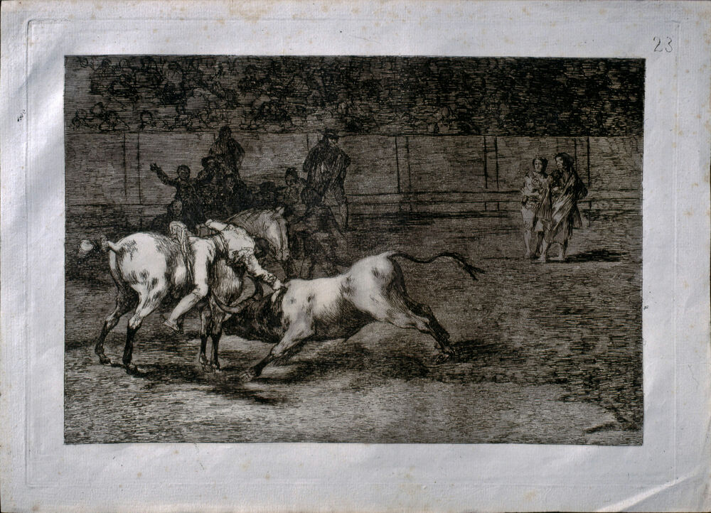 Mariano Ceballos, called "el Indio", kills the bull from horseback