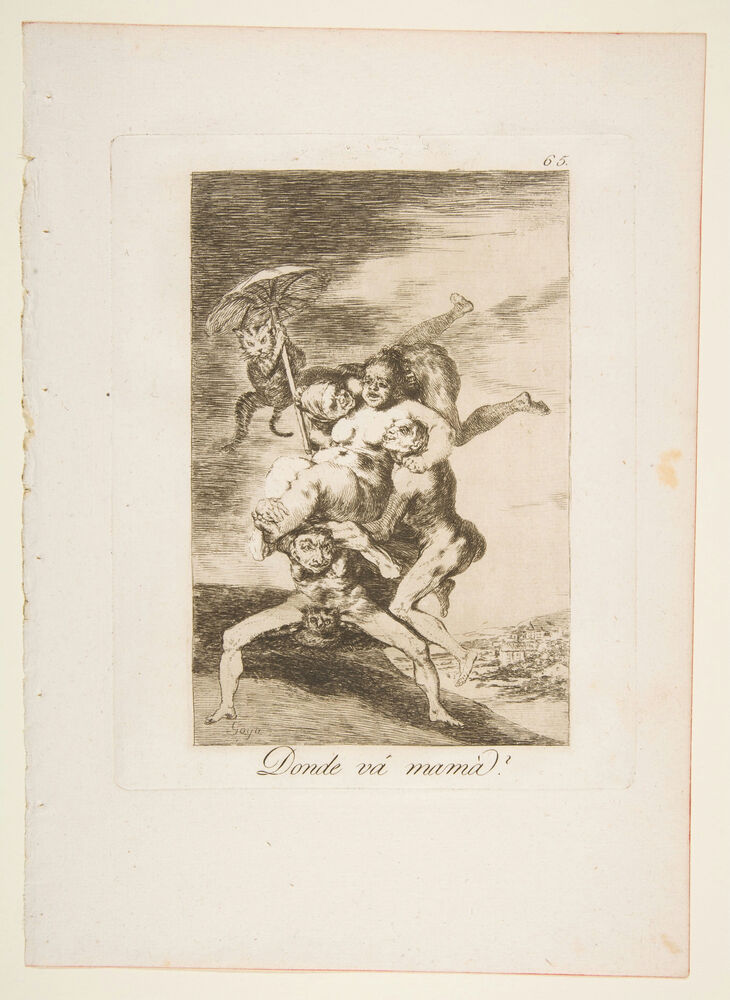 Plate 65 from ' Los Caprichos':Where is mom going? (Donde vá mamá?)