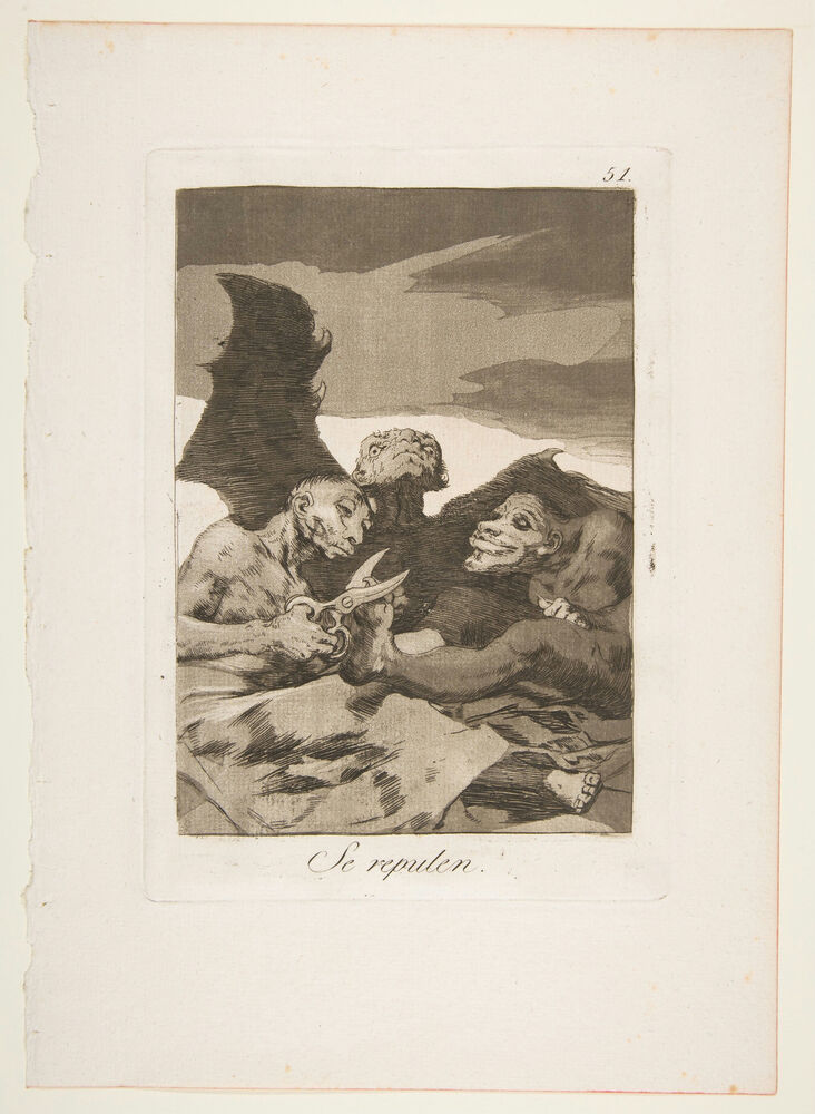 Plate 51 from 'Los Caprichos': They spruce themselves up (Se repulen.)
