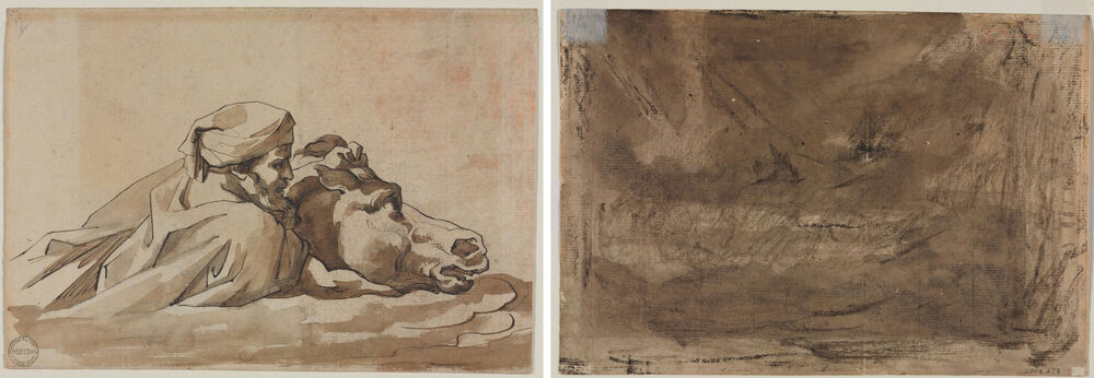 Man Clutching a Horse in Water, after Poussin's "Deluge" (recto); Compositional Study? (possibly for "Poussin's Deluge") (verso)