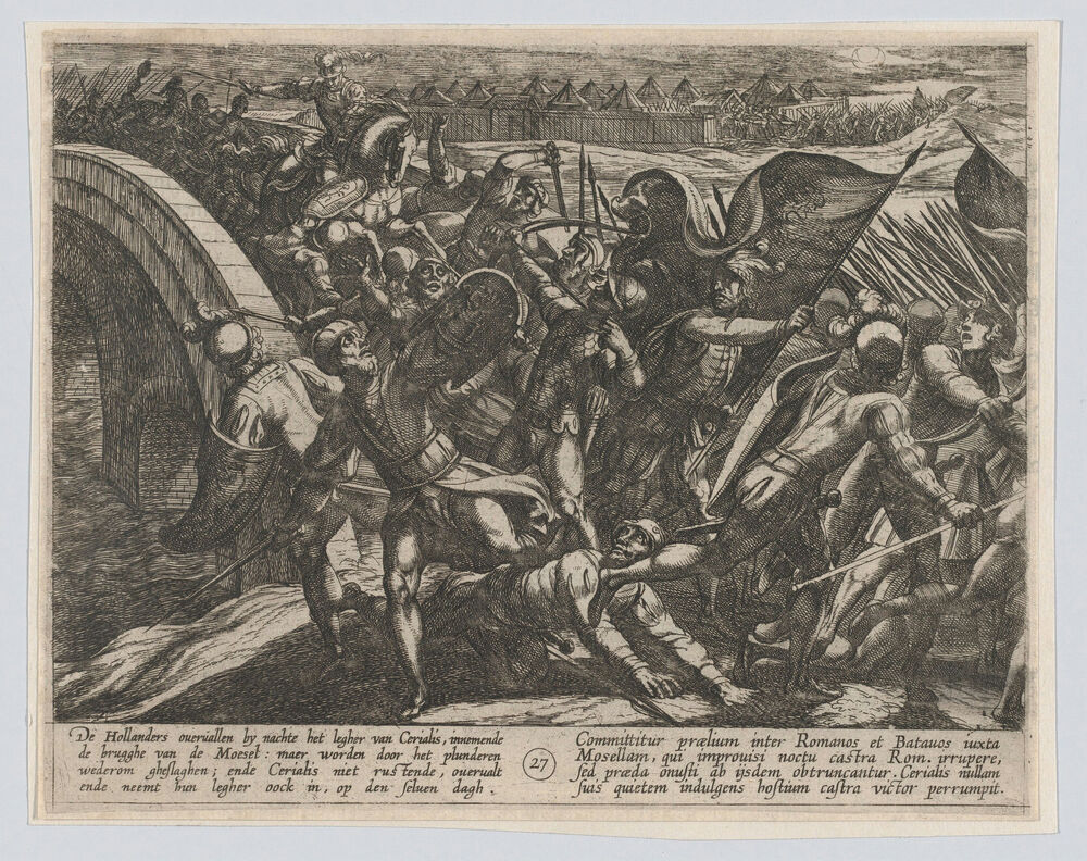 Plate 27: The Dutch During a Surprise Attack of the Roman Camp on the Moselle, from The War of the Romans Against the Batavians (Romanorvm et Batavorvm societas)