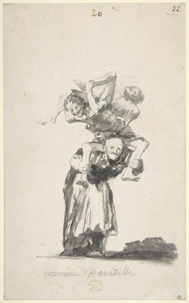 'Nightmare'; an old woman carrying figures on her back; folio 20 from the Witches and Old Women Album 'D'