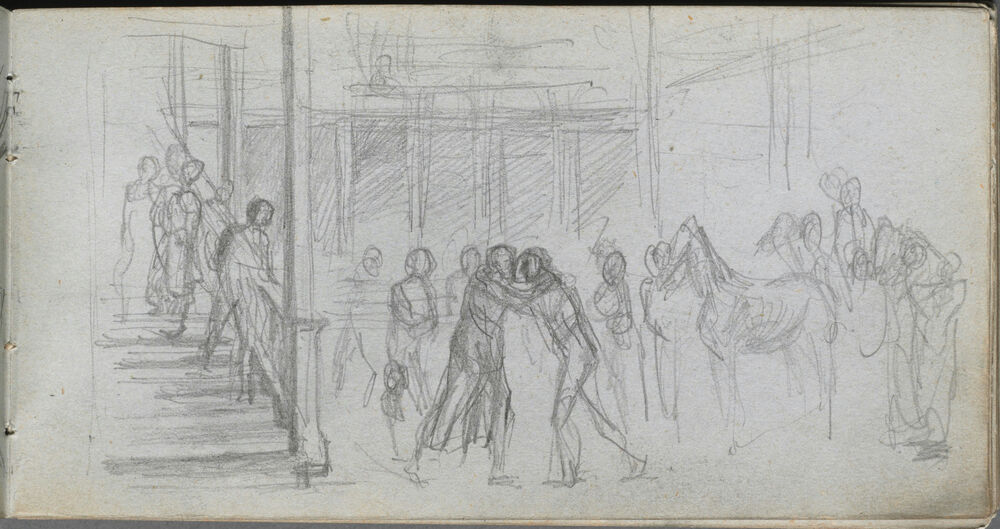 Sketchbook, page 62: Figure Study, Stairway, Horse