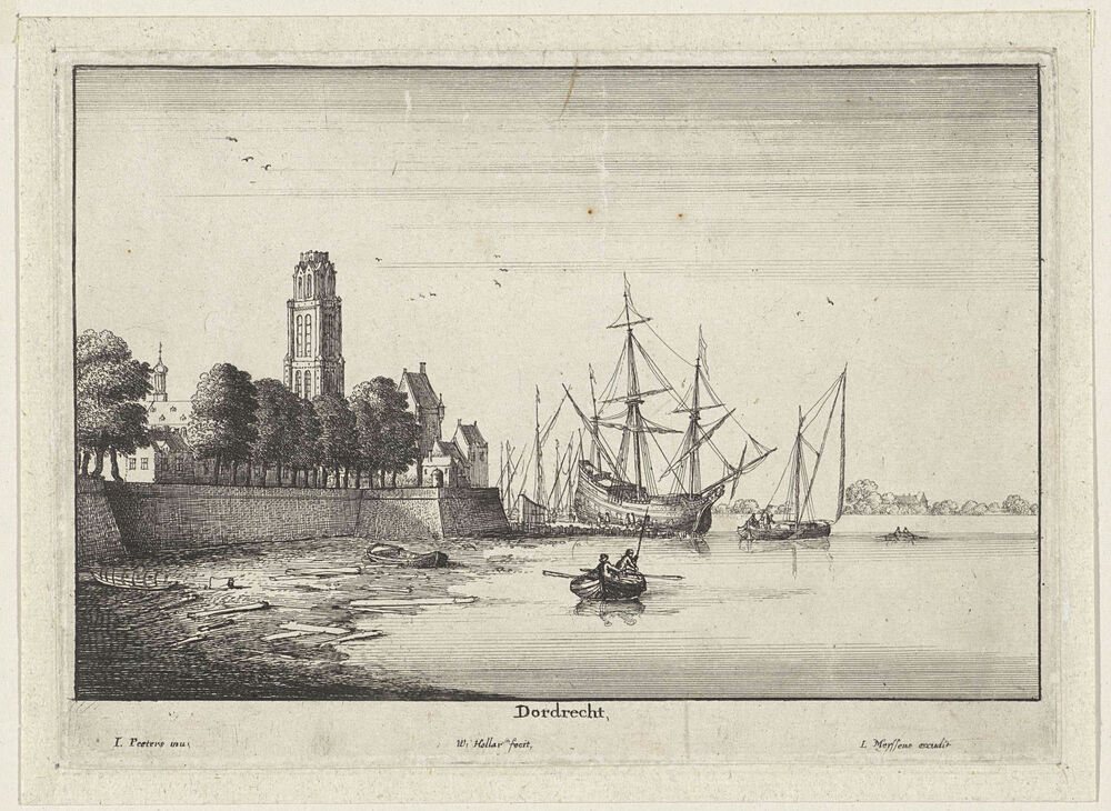 Gezicht op Dordrecht met schepen