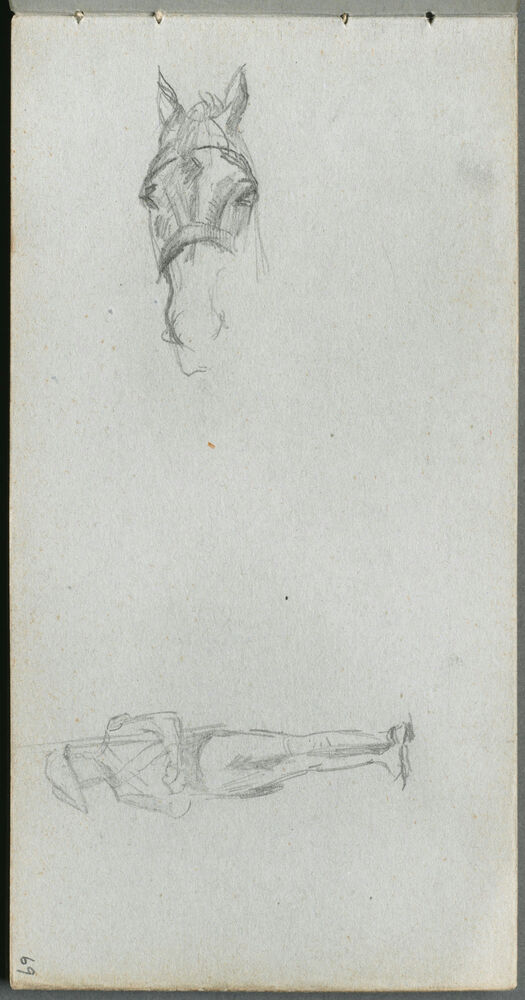 Sketchbook, page 69: Study of a Hand, a Horse, and a Figure