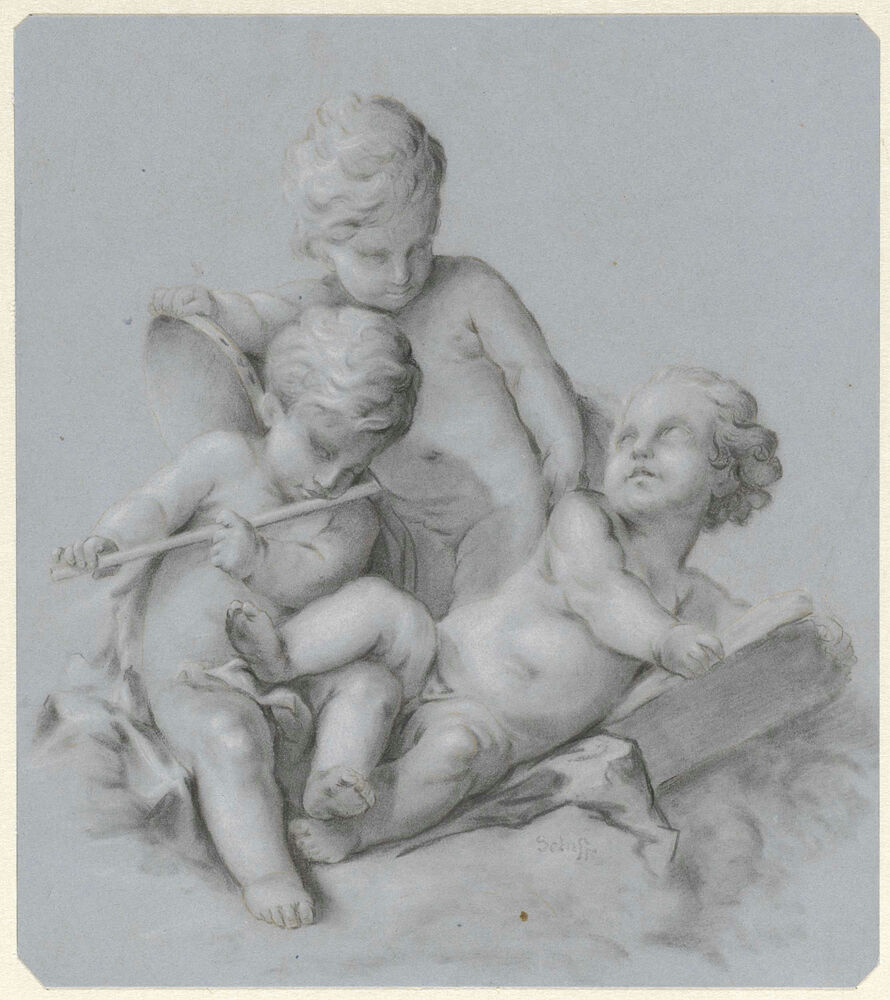 Allegorie op de muziek, dans en poëzie uitgebeeld door drie Putti
