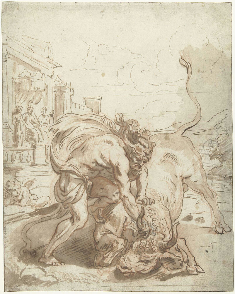 Hercules verslaat Acheloüs in de gedaante van een stier