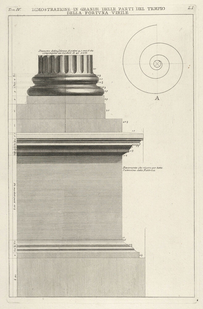 Section of column base from the Temple of Fortuna Virilis (Tempio della Fortuna Virile), from the series 'Le Antichità Romane'