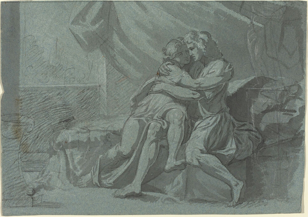Embracing Lovers in Classical Dress / A Woman in Classical Dress Looking Up