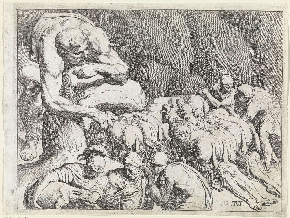 Odysseus ontsnapt uit de grot van Polyphemus