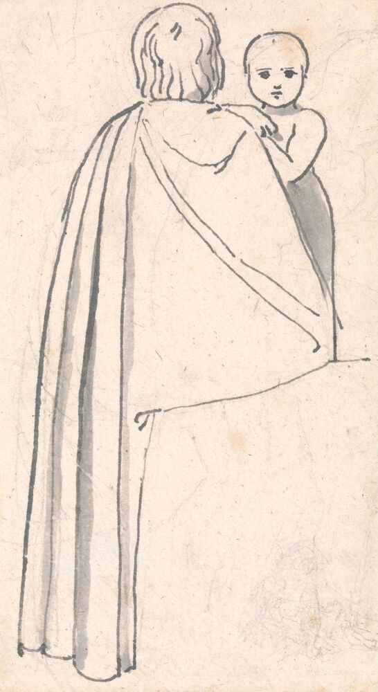 Back View of a Woman with Child Looking Over Her Shoulder