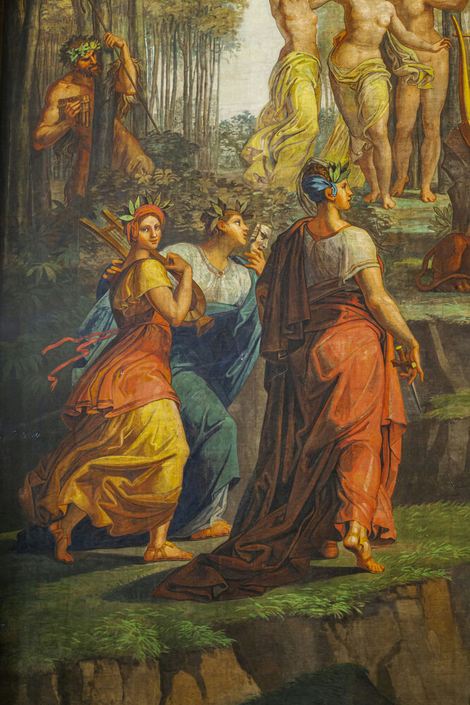 Borghesi's stage curtain, the three muses Thalia, Melpomene, Euterpe, and the satyrus Marsia