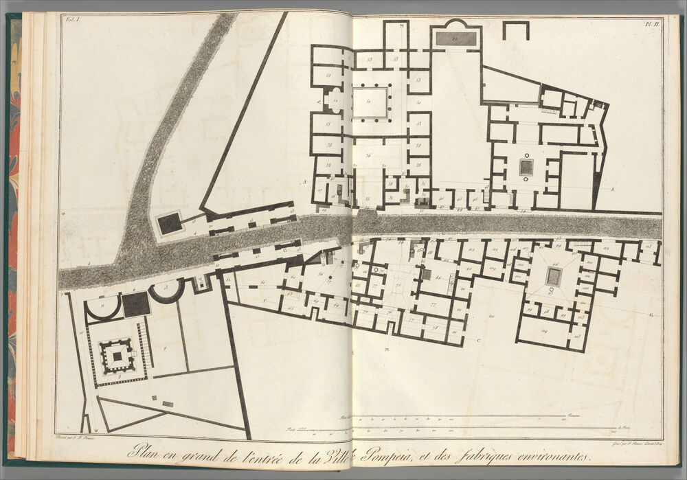 Large plan of the entrance of the town of Pompeii, and its surrounding buildings, from Antiquités de Pompeïa, tome premier, Antiquités de la Grande Grèce... (Antiquities of Pompeii, volume one, Antiquities of Great Greece...), volume 1, plate 2
