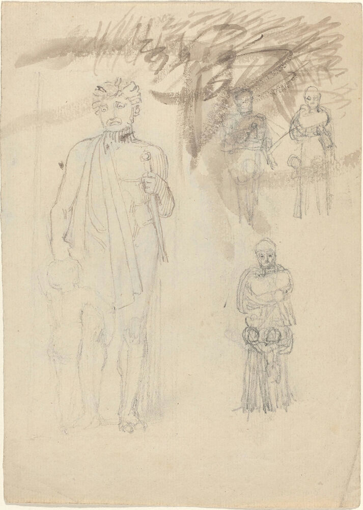 Sheet of Studies, including Warrior with Child [recto and verso]