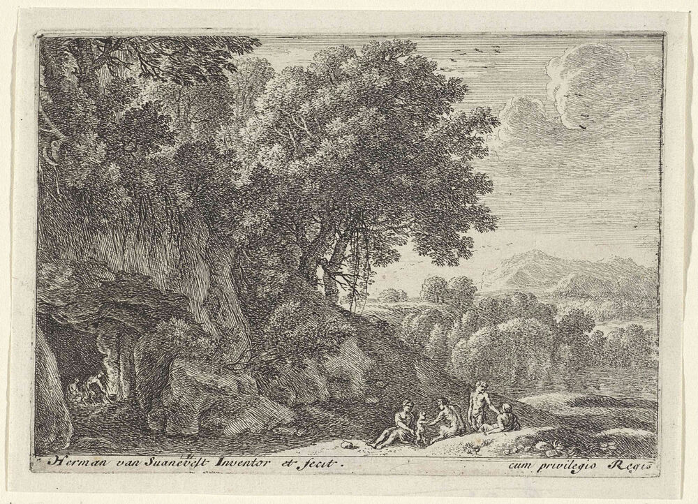 Saters rond het vuur in een grot