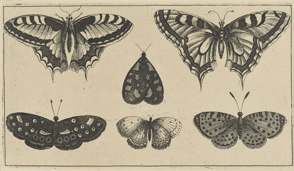 Vijf vlinders en een mot