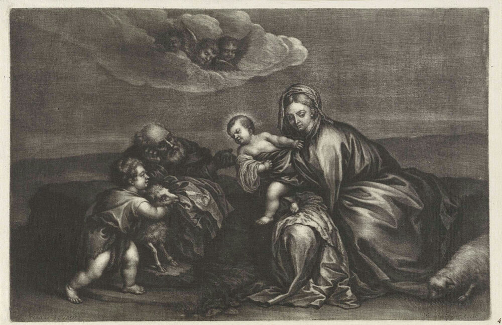 De Heilige Familie met Johannes de Doper in een landschap