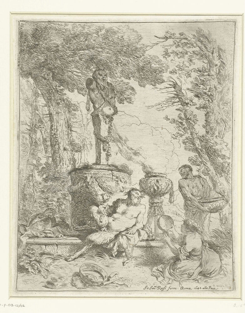 Feest bij een standbeeld van de god Terminus
