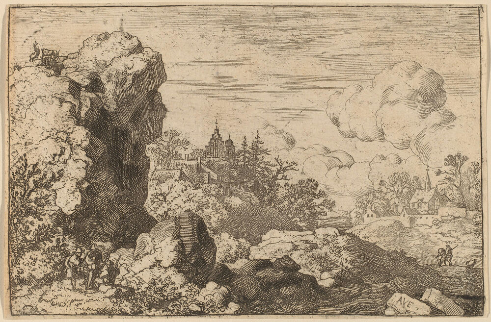 Three Travelers at the Foot of a High Rock