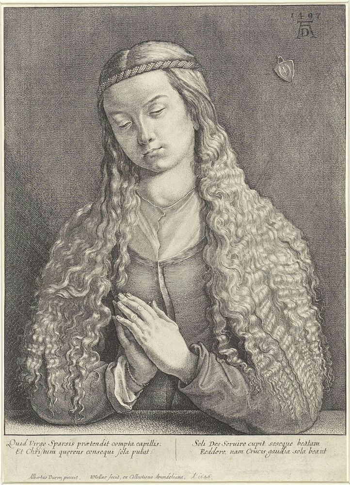 Biddende vrouw met lang haar