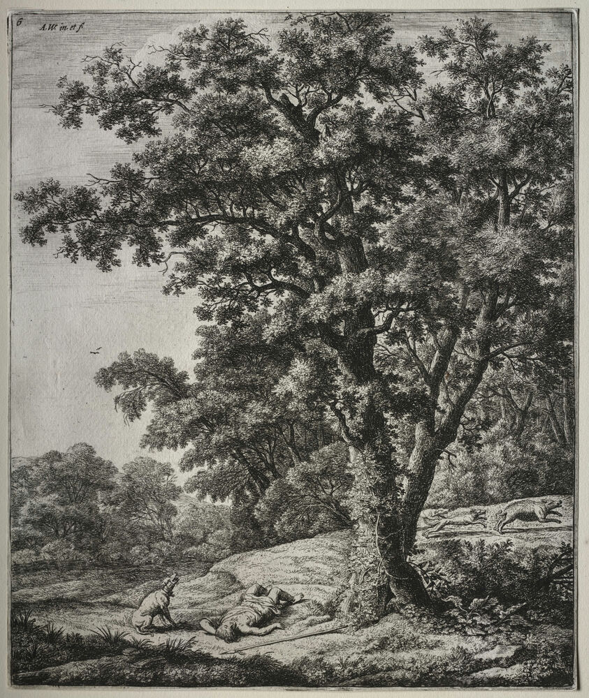 Six large upright landscapes with scenes from Ovid's Metamorphoses: The Death of Adonis