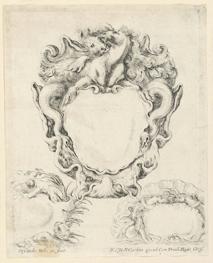 Three Escutcheons, No. 9 from "Raccolta di varii cappriccii et nove inventioni di cartelle et ornamenti"