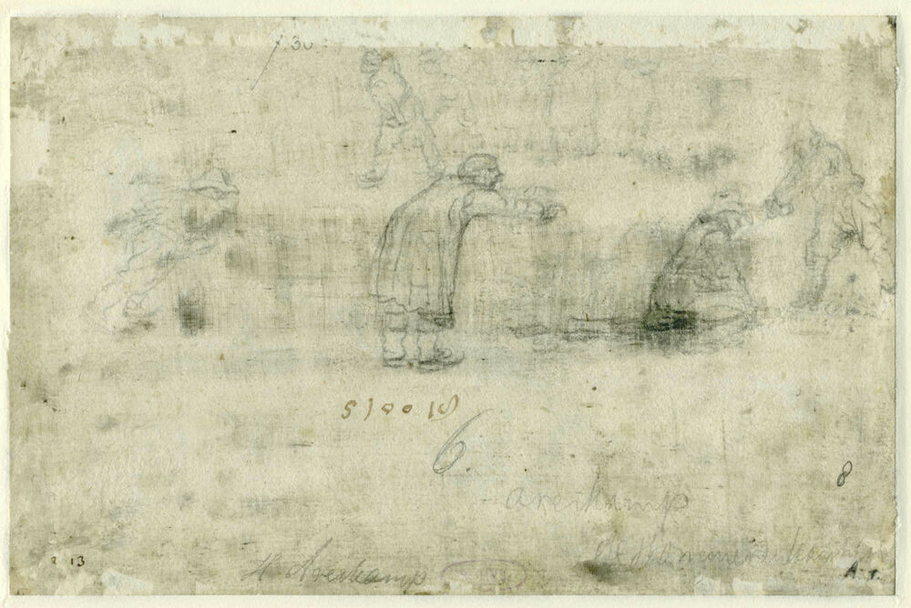 Sketches of Figures on the Ice / recto: Winter Scene on the Frozen Canal near the Kalverhekkenpoort, Kampen