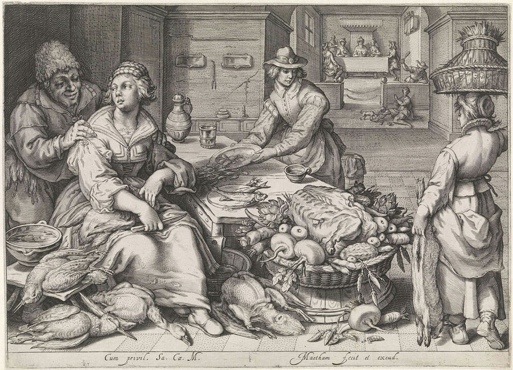 Keukenstuk met parabel van de rijke man en de arme Lazarus