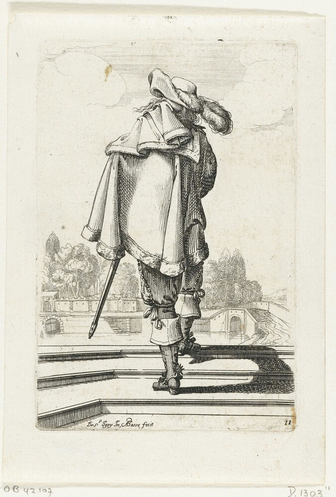 Franse edelman op de rug gezien, gekleed volgens de mode van ca. 1630